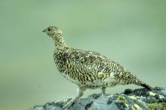 In inverno ha piumaggio completamente bianco ad eccezione di due brevi tratti neri nel maschio; nella livrea estiva il piumaggio diviene grigio giallognolo gialliccio.