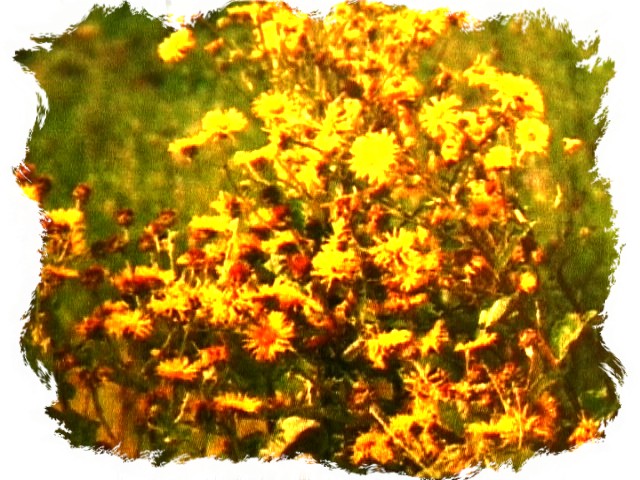 Enula capana ( Inula helenim) Habitat: assai frequente nei boschi aperti, tra le siepi nei prati a suo calcareo. Periodo di fioritura: da luglio a novembre Fiori: è caratterizzata dalle inflorescenze di capolini giallo, giallo-dorato, di dimensione di 6-7 cm Fusto: è eretto e grosso, striato, alto fino a 150 cm Foglie: sono acute, dentate, vellutate, lanose nella parte inferiore